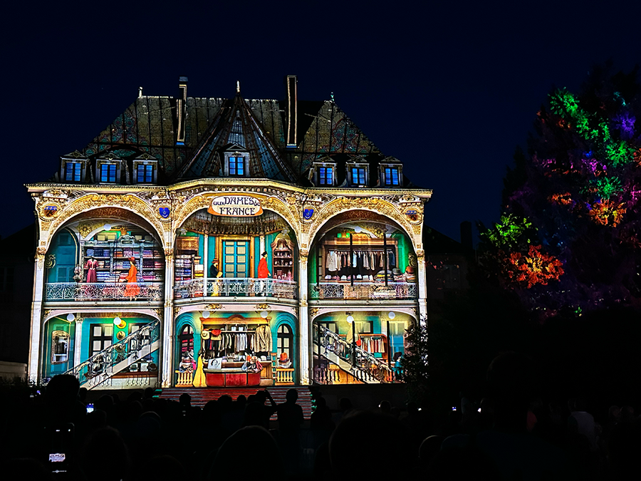 Un mapping inédit sur la façade arrière du musée Joseph-Déchelette. Il nous raconte l’histoire de Roanne et met en lumière les savoir-faire locaux, tels que la gastronomie, ses marchés animés, ou encore le textile.